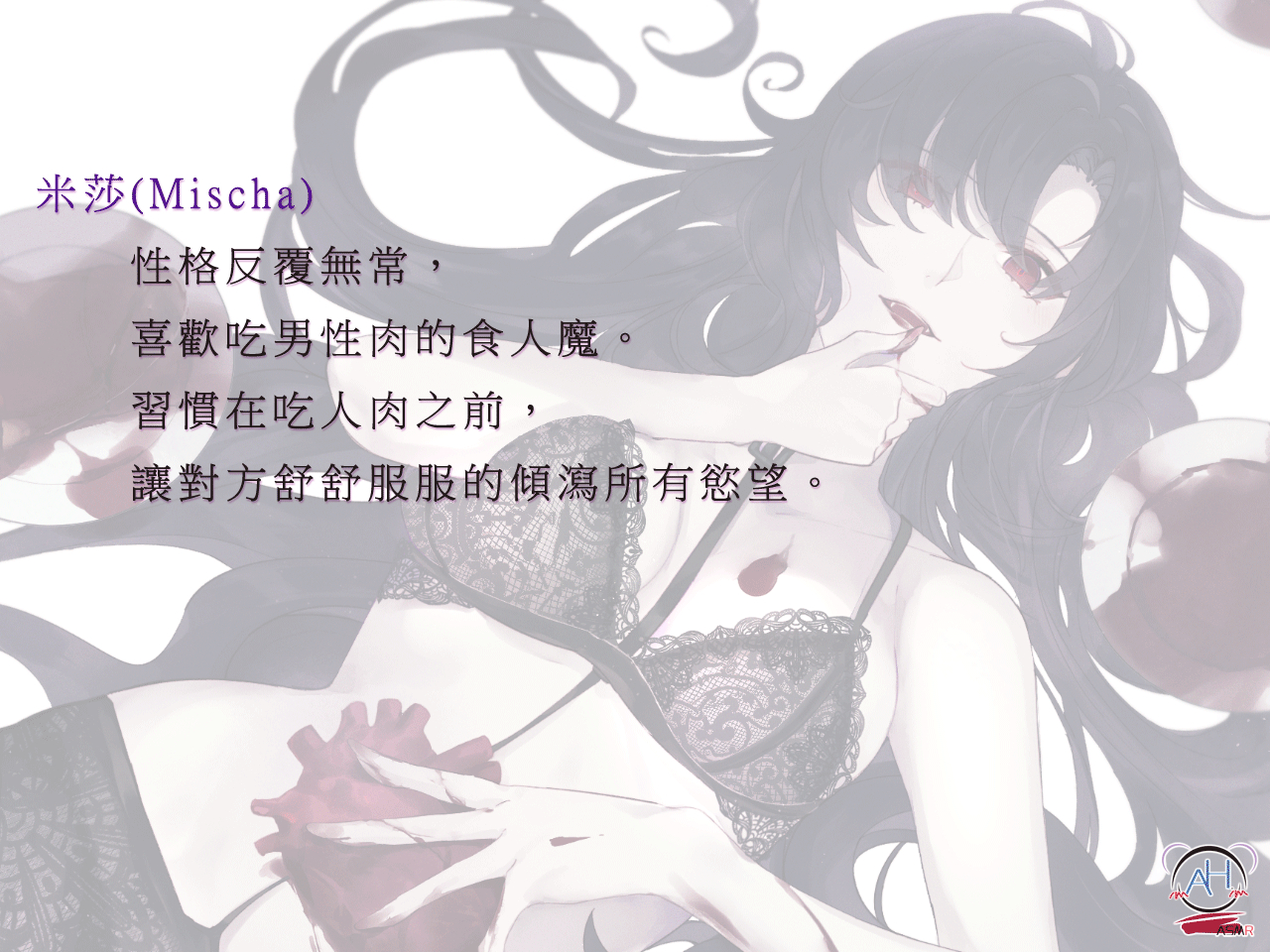 性格反覆無常,喜歡吃男性的肉的食人魔。習慣在吃人肉之前,讓對方舒舒服服的傾瀉所有慾望。