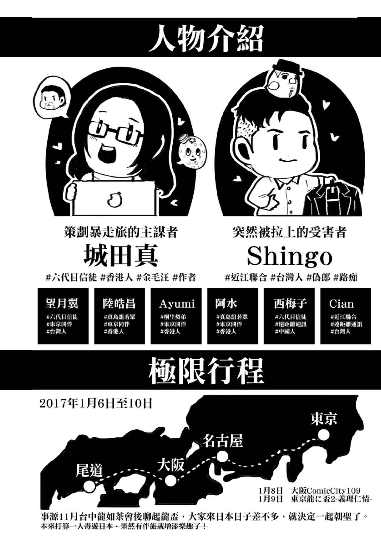 【內容】日本遊記,包含大阪、廣島尾道、名古屋、東京的人中之龍踩點,以及大阪Comic City同人展及東京人中之龍Only記錄。